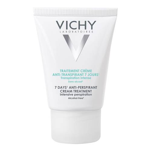 Deo Anti-traspiranteCREMA Modalità d'uso: applicare un sottile strato di crema sulla pelle perfettamente asciutta e non irritata. Caratteristiche: crema non grassa che penetra rapidamente e non lascia tracce bianche sulla pelle. Efficace per 7 giorni, regolazione continua, settimana dopo settimana. Ipoallergenico, all'Acqua termale di Vichy. Componenti: aqua/water; aluminum chlorohydrate; aluminum sesquichlorohydrate; cetyl alcohol; peg-100 stearate; glyceryl stearate; sorbitol; dimethicone; parfum/fragrance; iodopropynyl butylcarbamate; peg-4 dilaurate; peg-4 laurate. Cod. 7330303