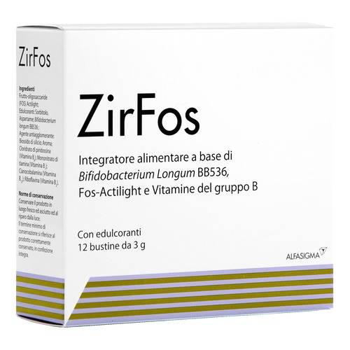 Zir FosBUSTINE Indicato nel riequilibrio della flora batterica intestinale conseguente a: squilibri alimentari, terapia antibiotica, diarrea. Posologia e Modalità d'uso 1 bustina al giorno. Versare la bustina in circa 1/4 di bicchiere d'acqua, mescolare e assumere subito dopo la preparazione, preferibilmente lontano dai pasti. Caratteristiche Contiene derivati del latte (compreso il lattosio) e derivati della soia. Avvertenze Non superare la dose giornaliera consigliata. Tenere fuori dalla portata dei bambini al di sotto dei tre anni. Gli integratori non vanno intesi come sostitutivi della dieta. Conservazione Conserva...