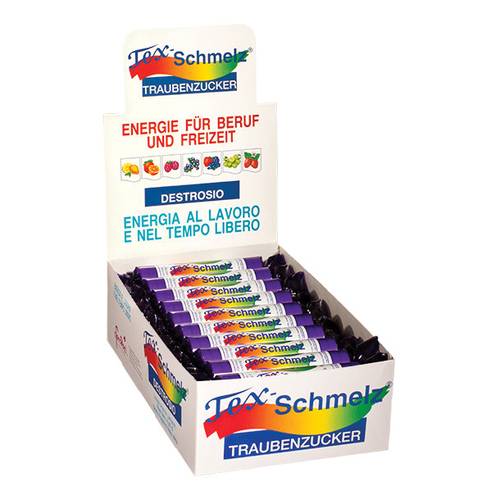 Tex-SchmelzDESTROSIO Caratteristiche Destrosio in rotoli, alla frutta. Disponibile nei gusti limone, lampone, fragola di bosco, ribes nero, frutti di bosco, arancia, albicocca e mela. Ridona forza ed energia, sia al lavoro, durante attività sportive e nel tempo libero. Formato Rotoli da 33 g. Cod.7004 / 7006 / 7001 / 7000 / 7009 / 7002 / 7003 / 7007